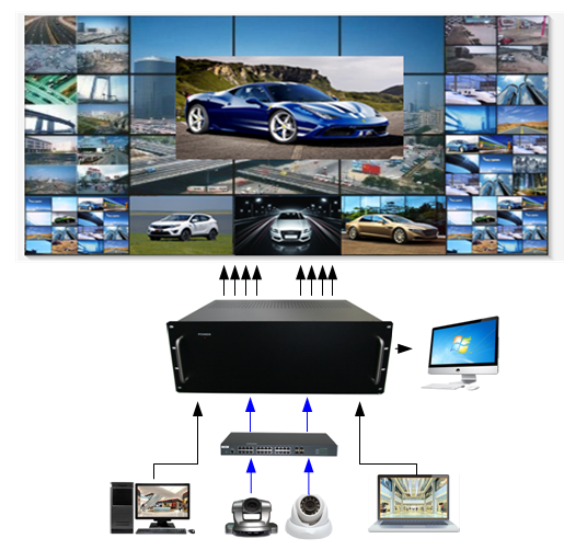 高清數(shù)字解碼矩陣自帶內(nèi)拼接、分割、開窗、漫游功能,廣泛應(yīng)用于道路交通、平安智慧城市監(jiān)控、軍隊、工廠、學(xué)校、銀行、商場、大型公共場所、森林防火、智能樓宇等各類場合的視頻監(jiān)控中心。實(shí)現(xiàn)前端的網(wǎng)絡(luò)視頻信號的解碼,及對大屏顯示的控制。